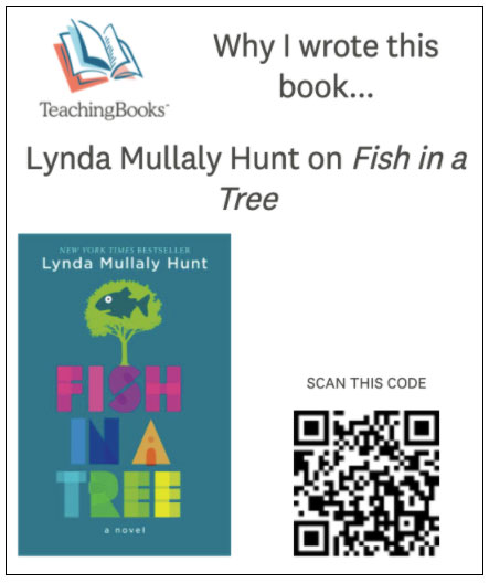 Create a Shelf Talker for Lynda Mullaly Hunt’s Meet-the-Author Recording for Fish in a Tree where she explains how one teacher helped her succeed in reading and writing.